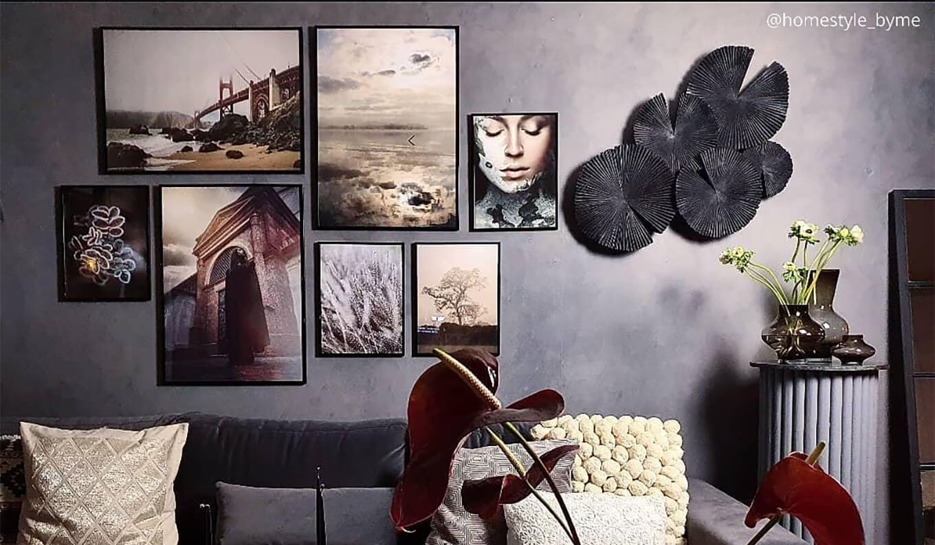 Цветове на рамките: Рамките се предлагат в какви ли не цветове! Първото, което идва на ум, може да е рамка в черно, бяло или класическите златисти и естествено дърво. Но рамки могат да се намерят и в повечето цветове, включително зелено, синьо, тюркоазено, лилаво и оранжево. Изберете цвят, който или хармонира с цветната палитра на вашия интериор, или пък цвят, който по стилен начин създава ефектни контрасти във вашия дом.