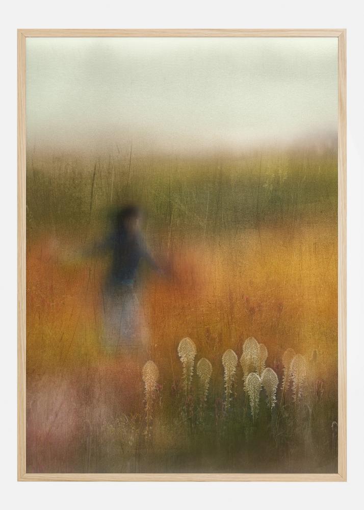 Абстрактен постер с момиче в дълга меча трева. Изображението изглежда като мека картина с жълти и зелени цветове, които предизвикват усещане за пролет. Замъгленото момиче се движи през силните четки в тревата, за да създаде движение в цялото изображение. Закачете го у дома си, за да създадете невероятен старт на разговор.