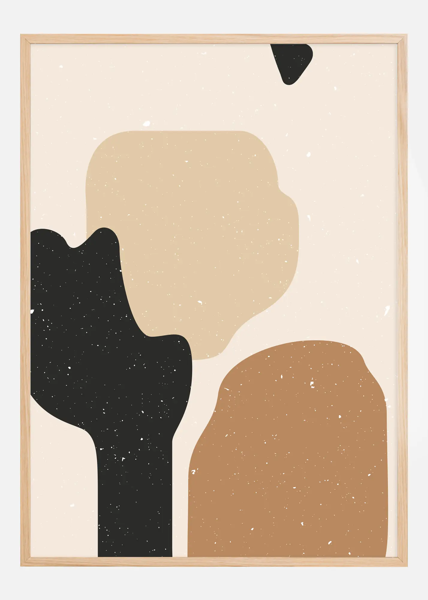 Този абстрактен постер, със своите елегантни органични форми и топла, земна цветова палитра, придава спокойно и модерно усещане на всяка стая. Мотивът, характеризиращ се със своите черни и бежови тонове с акценти от теракота, е толкова загадъчен, колкото и приветлив, като насърчава зрителя да интерпретира собственото си значение в простите, но мощни форми.