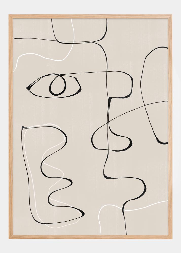 Принтът, с неговите прости черни линии върху кремав фон, е отлично представяне на модерното изкуство, което грабва фантазията на зрителя. Този постер е подходящ за дом или офис, където елегантният дизайн и провокативните произведения на изкуството са ценени. Неговата чиста естетика го прави универсално произведение, което допълва различни интериорни стилове.