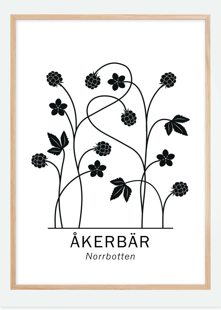 Стилизиран плакат с къпини в черен печат. Няколко стилизирани цвята и листа от къпина се вият около този прост черно-бял печат. Думите Къпина Норрботен са разположени най-долу на изображението, което ще подхожда добре на цветна стена, за да й придаде още повече живот.