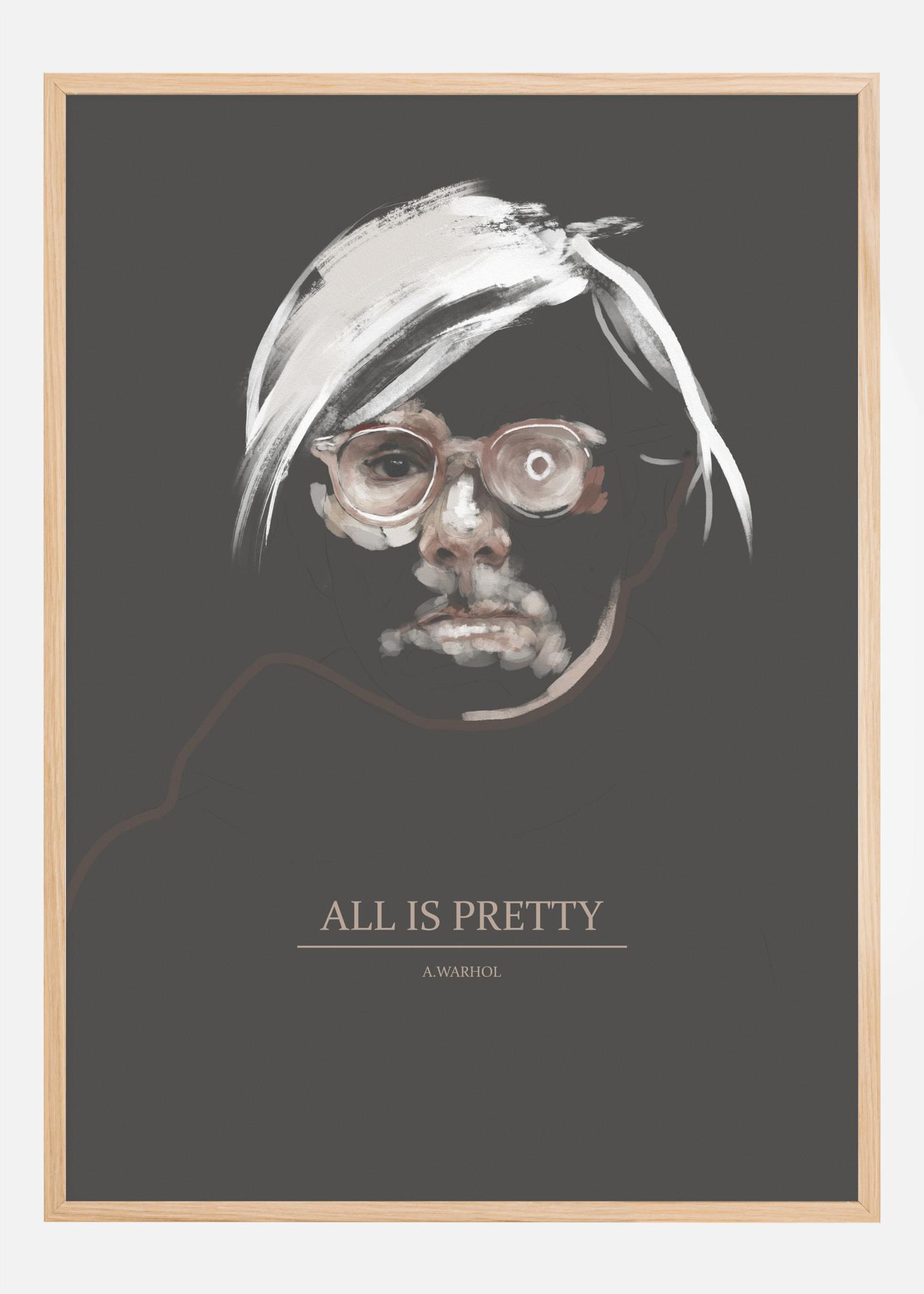 Постер на художника Анди Уорхол. Този портрет на художника показва неговата бяла коса и се фокусира върху очите му, едното спокойно и другото диво. Слоганът - Всичко е красиво – е разположен в долната част, за да ви вдъхновява с цитат и послание, когато минавате покрай постера, закачен в дома ви.