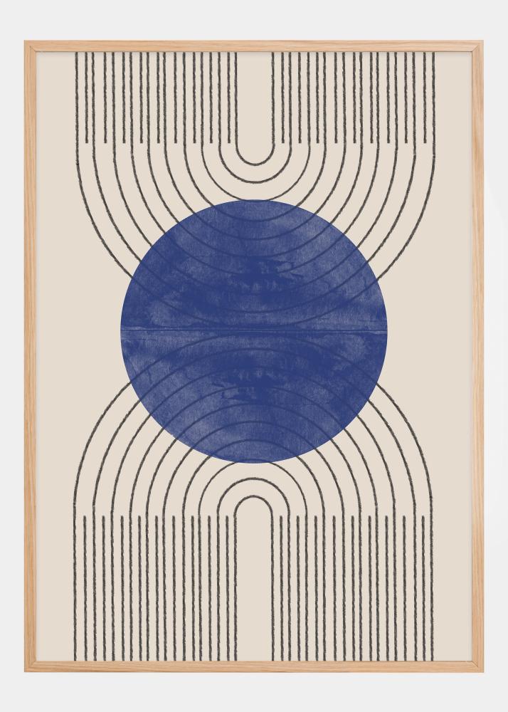 Създайте спокойна и събрана атмосфера в стаята си с нашия абстрактен постер, който смесва меки линии и смели цветове. Големият син кръг в средата придава осезаемо усещане за спокойствие и е като портал към друг свят, рамкиран от серия концентрични дъги, които създават архитектурно усещане. Това произведение на изкуството смесва традиция с модерност и придава мирен баланс на вашата обстановка.