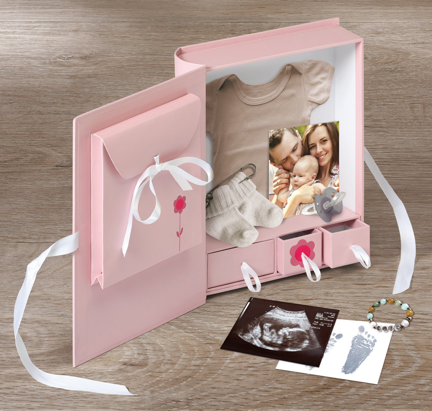 Тази кутия за спомени е едновременно практична и сладка. Тя е чудесен подарък за новоиспечени родители – и разбира се, можете да се поглезите с тази красива кутия за съхранение! Тя е подходяща за съхранение на биберони, малки дрехи, поздравителни картички, фотографии и други спомени от първата година на бебето.