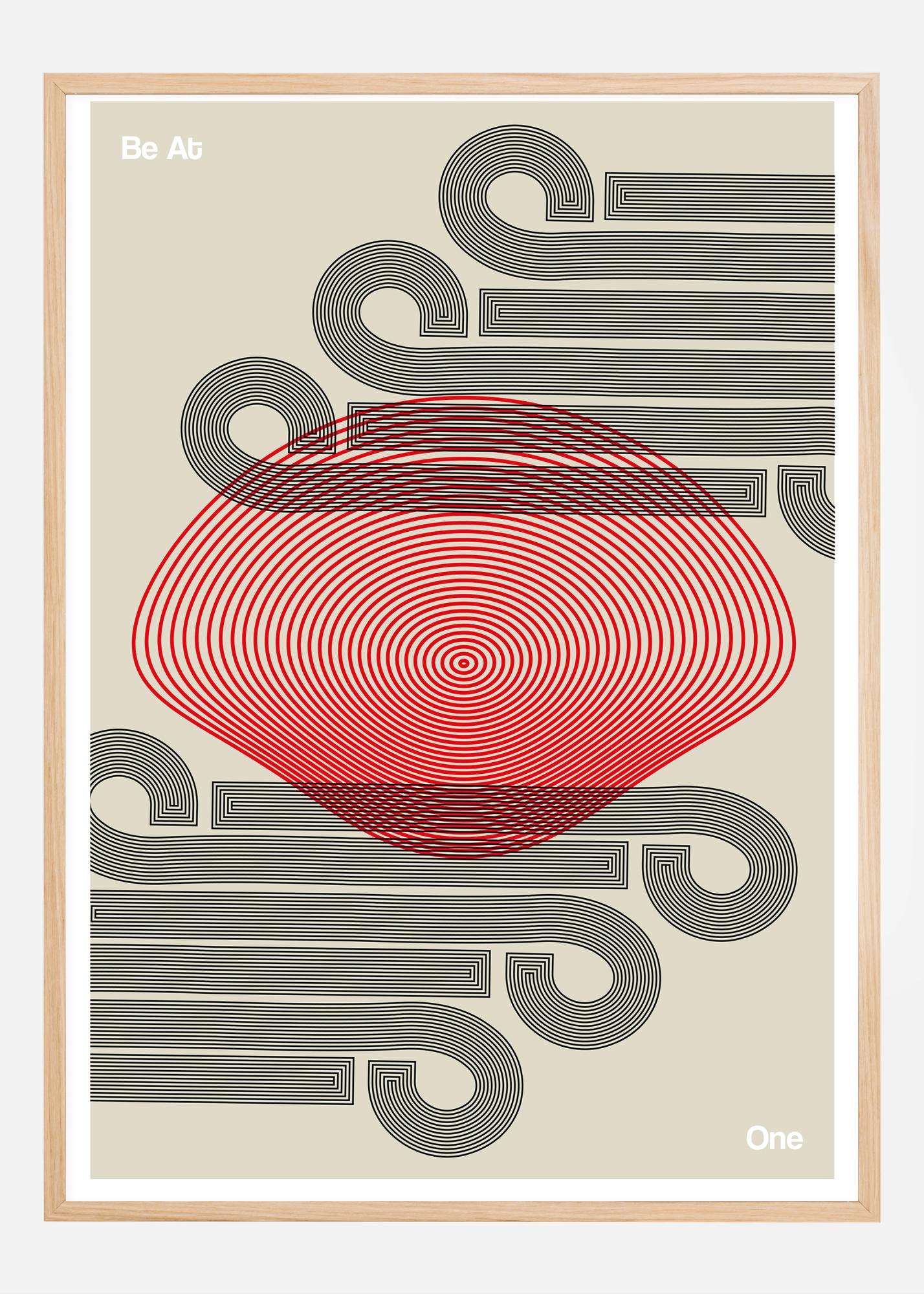 Този артистичен плакат със заглавие "Be At One" е почит към абстрактното изкуство и модерния дизайн. Със своята хипнотизираща червена спирала в центъра и черно-белите линии, които създават илюзия за движение, този принт мигновено привлича вниманието във всяко помещение. Той е създаден да събужда любопитството на зрителя и да вдъхновява размисли, което го прави перфектен катализатор за разговори в дневна или офис.