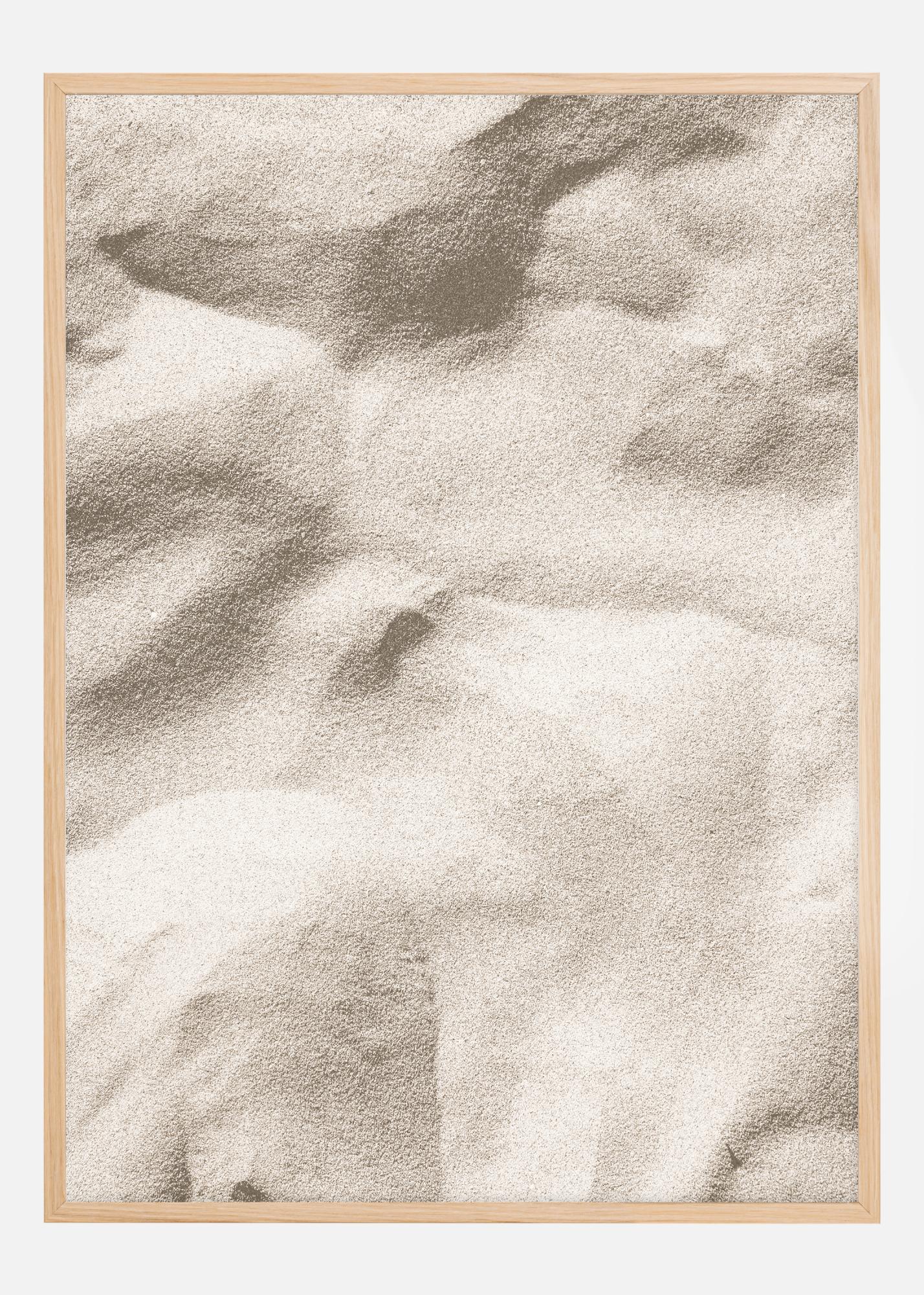 Този минималистичен и медитативен постер улавя естествената текстура и меките контури на пясъчните дюни. Монохромната фотография играе със светлина и сянка, за да подчертае чувствените и краткотрайни форми, създадени от движението на вятъра по повърхността на пясъка. Меките градации от светло към тъмно създават почти хипнотичен ефект, приканвайки към размисъл и спокойствие.