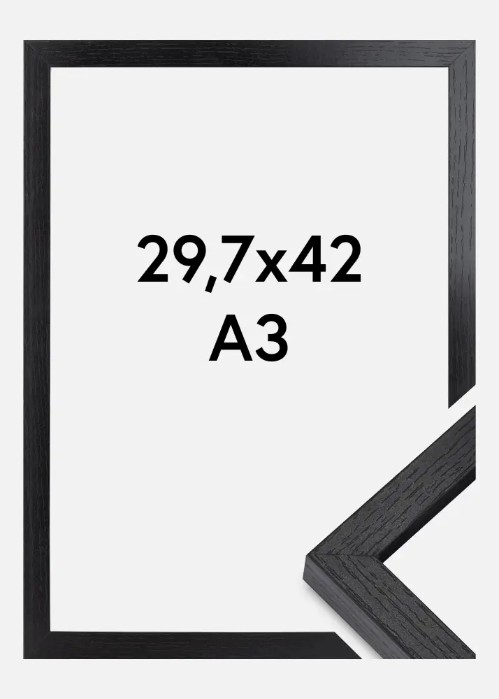 Открийте елегантната и многофункционална рамка за снимки с размери 29,7x42 см, перфектна за подчертаване на вашите произведения на изкуството или фотографии във формат A3. Тази рамка за картини не е просто стилна рамка с дълбокия си черен цвят, но и практично решение за осигуряване на допълнителни измерения на вашия мотив.