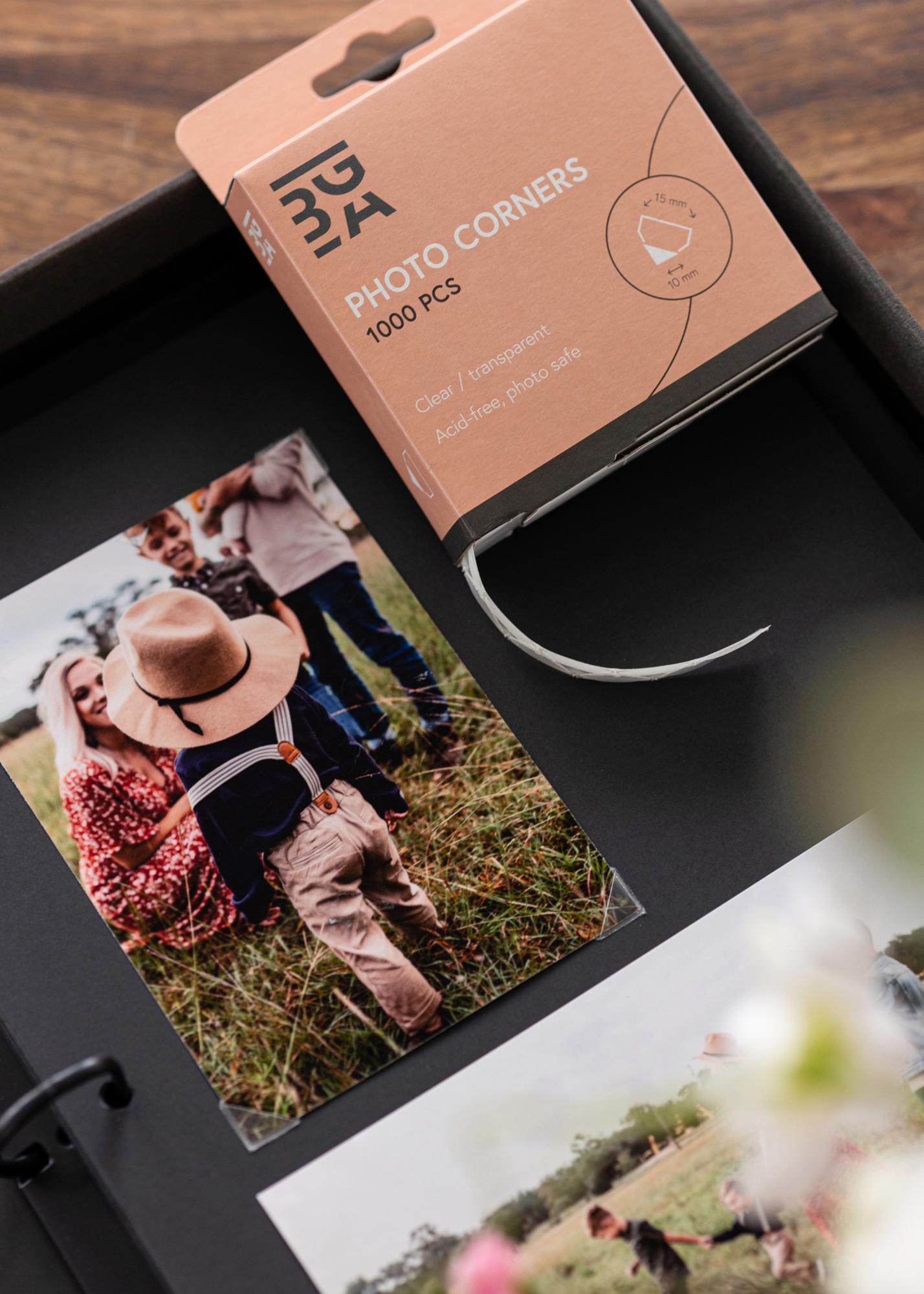 Фотоъглите са перфектни, когато искате да монтирате снимки в фотоалбум и не желаете да използвате лепило. Тъй като ги закрепвате в ъглите на снимката, те също така предпазват тези от износване с времето. Резултатът е стилен, удобен и надежден монтаж на вашите снимки.