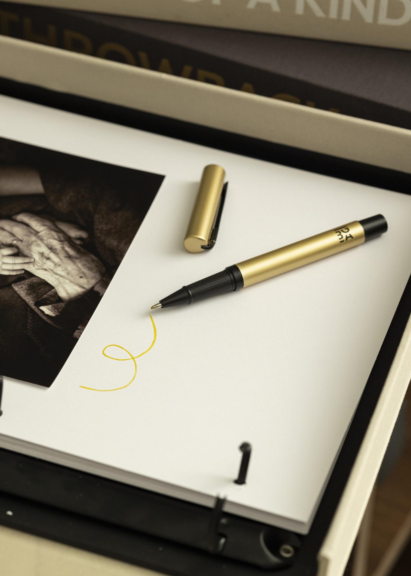 Стартирайте избора на рамка »Химикалка за албуми в златист металик цвят, която е отлична за използване върху гладки повърхности, като например снимки. Химикалката има ширина на върха 1 мм.