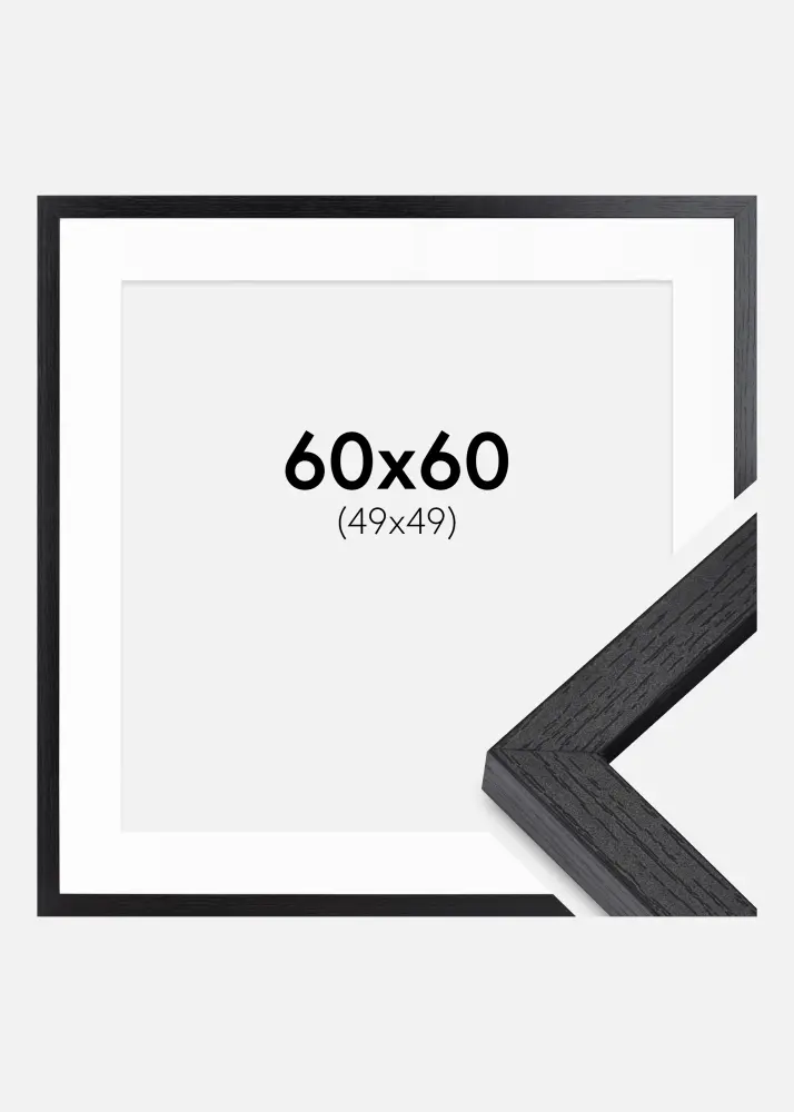Тази елегантна черна рамка за картини с бял паспарту е перфектен избор за подчертаване на любимите ви снимки. С размер на изображението 50x50 см и външни размери 62,6x62,6 см, тя предоставя стилна рамка, която пасва във всеки дом.