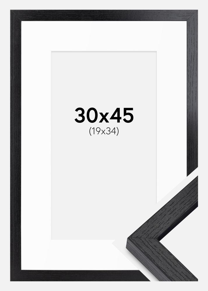 Тази елегантна черна фоторамка с ширина 20 мм и дълбочина 30 мм е перфектна за подчертаване на любимите ви снимки. С паспарту в бял цвят, подходящо за снимки с размер 20x35 см, тя създава стилна обрамка, която придава на вашия мотив допълнителен фокус и дълбочина.