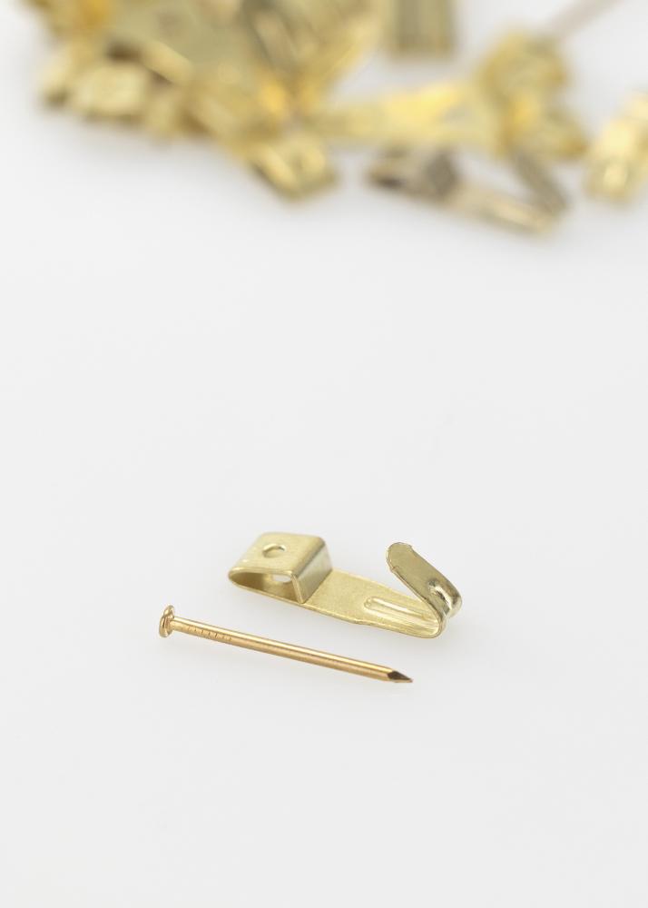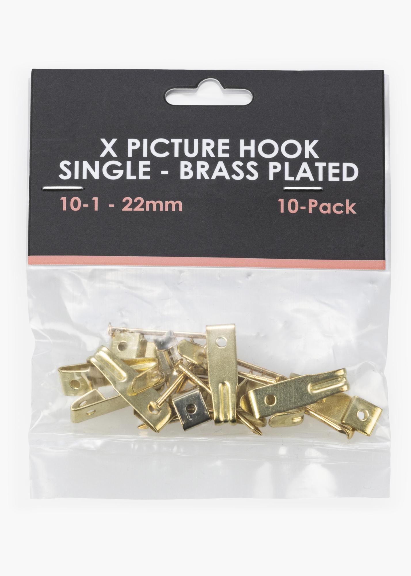 X-кука за монтаж на дървена или гипсова стена. Издържа натоварване до 5 кг. Месингов цвят.