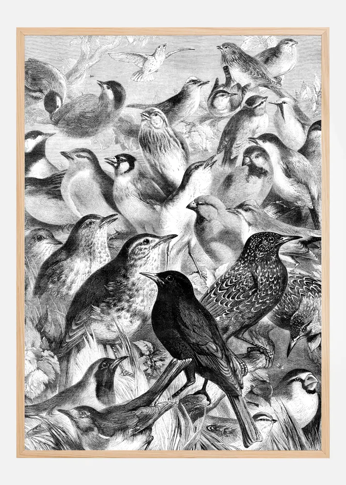 Черно-бял плакат с различни птици. Научете всичко за птиците с помощта на този печат с различни британски птици. Забавлявайте се, докато откривате птиците в картината и научавате нещо за тях. Позволете им да изпъкнат още повече, като окачите картината на светло оцветена стена.