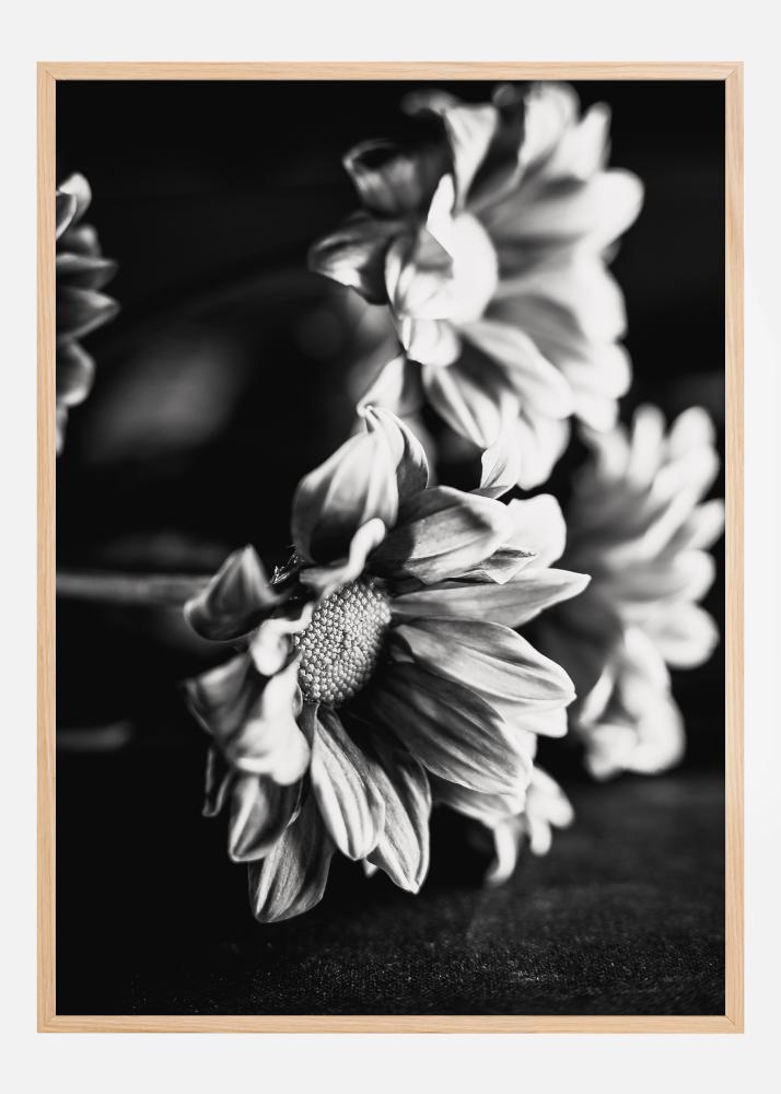 Този постер изобразява цветна аранжировка в черно и бяло, в която сенките и светлината си взаимодействат, за да подчертаят деликатните контури и текстурата на всяко цветно листенце. Фокусът на изображението върху контраста между тъмното и светлото улавя красотата на цветята по начин, който предизвиква ново оценяване на тяхната форма и структура. Този постер е изтънчена и артистична интерпретация на чудесата на природата, идеална за създаване на усещане за спокойствие и красота във всяко пространство.