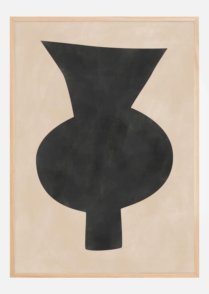 Този постер улавя същността на съвременното абстрактно изкуство с дръзката и семпла черна форма, наподобяваща ваза или скулптура, което предлага мощен визуален ефект на неутрален фон. Контрастът между дълбокото черно и успокояващото бежово прави това идеален плакат за тези, които искат да направят стилно, но уверено изявление в интериора. Динамичната и донякъде органична силуета на формата създава усещане както за движение, така и за спокойствие, което приканва за размисъл и интерпретация.