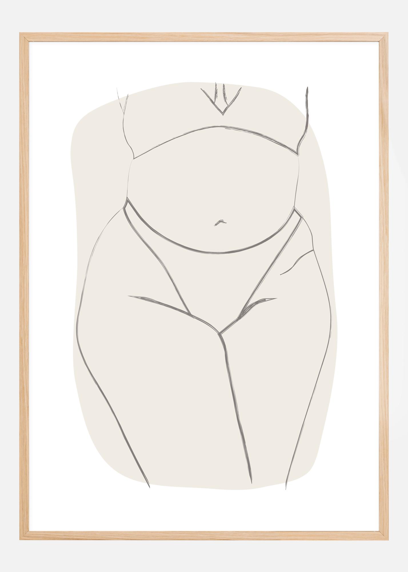 Семпъл постер с рисунка на корема и краката на жена. Скромно показва линиите на кръстосаните крака на жената, докато тя носи семпло бикини. Изчертани със светлосиво, силните линии изпъкват, за да създадат артистично произведение. Съчетавайте изображението с цветна стена за най-добър ефект.