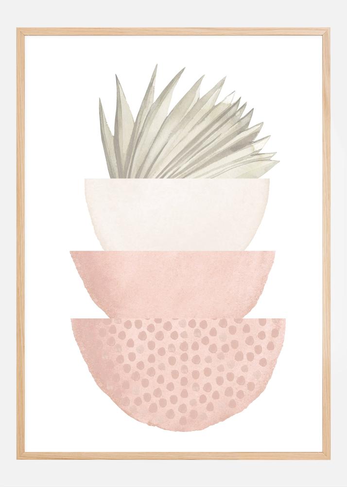 Този елегантен плакат е почит към минималистичния дизайн и изчистената естетика. Сивозелено растение се откроява от полукръгла купа в розови тонове с деликатна точкова текстура, всичко това на неутрален фон. Контрастът между строгото растение и меката купа създава приятен баланс. Това артпостер е перфектно за придаване на спокойна и органична атмосфера на стаята и е подходящо за модерни, скандинавски или бохемски интериорни стилове.