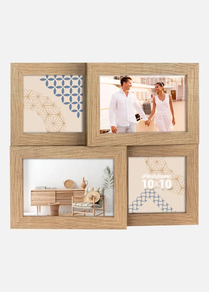 Рамката е проектирана да пасва на снимки с размери 10x10 см и 10x15 см, което ви дава гъвкавост да комбинирате различни формати. С общ размер 30x27 см, тази рамка за колаж ще бъде красиво допълнение към всяка стая.