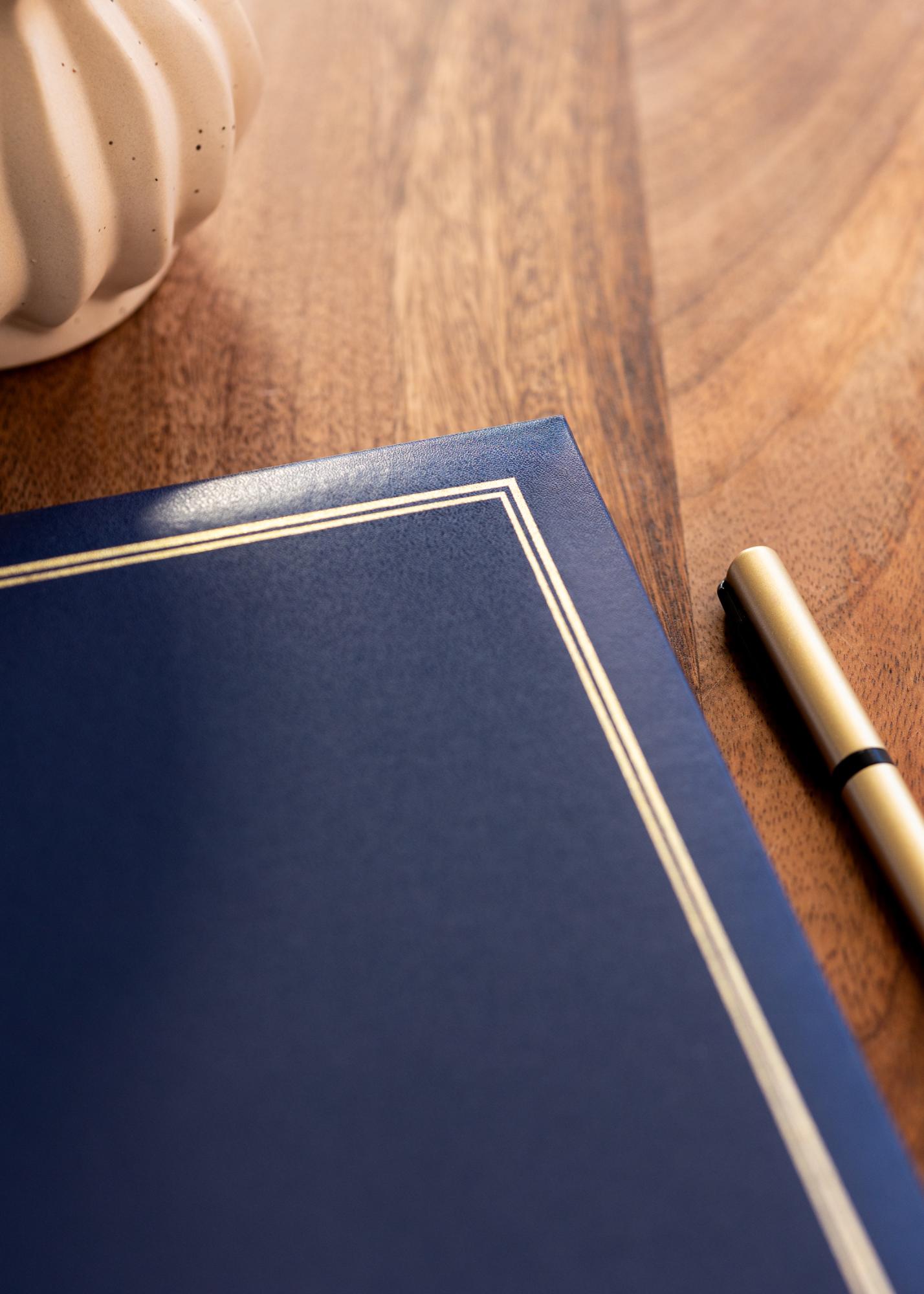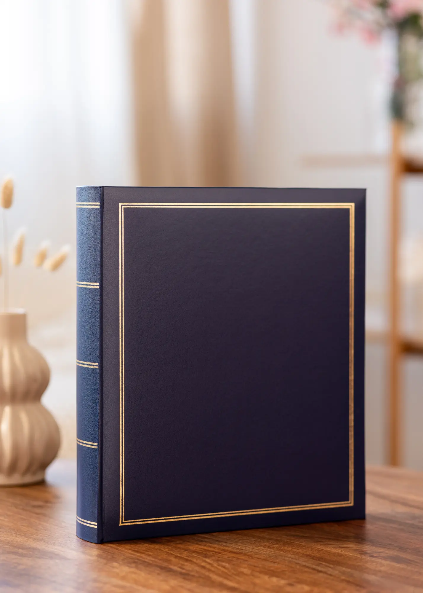 Classico Album Синьо е перфектният избор за вас, ако искате да създадете персонализиран и стилен фотоалбум. Със своите елегантни сини корици с детайли от злато, този албум ще бъде красива интериорна част във вашия дом. Албумът е с размери 30x33 см и има 100 бели страници, което се равнява на 50 листа, където можете да залепите вашите любими снимки и спомени.