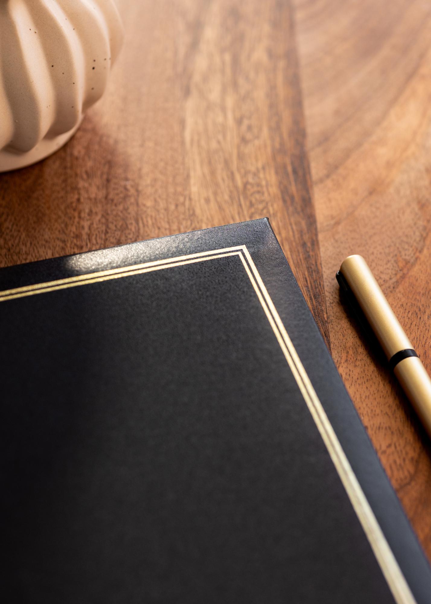 Classico Album Черно е идеалният избор за вас, ако искате да създадете личен и елегантен фотоалбум. Със своите елегантни корици в черно и златно албумът носи вечна атмосфера, която пасва на всички поводи. Албумът е с размери 32x34 см и съдържа 100 бели страници, което отговаря на 50 листа, където можете да залепите любимите си снимки.