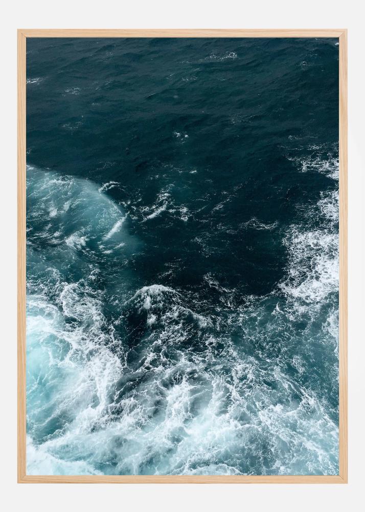 Плакат на море с вълни, които се разбиват и въртят в открито море. Бяла пяна се вихри около долния край на изображението, за да придаде по-спокоен тон на тъмна аквамарин. Представете си, че сте в лодка на вълните с помощта на тази фантастична картина.