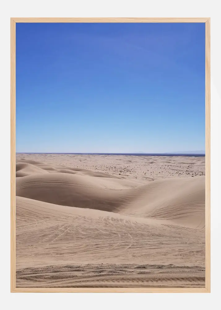 Една атмосферен постер с пустинен пейзаж. Дълбоката червена пустиня подчертава вълнообразните пясъчни дюни, водейки окото през пейзажа. Мекото синьо небе и мъгливите розови пръски дават усещане за ранната утрин. Насладете се на големите простори на природата, когато имате тази картина окачена на стената.