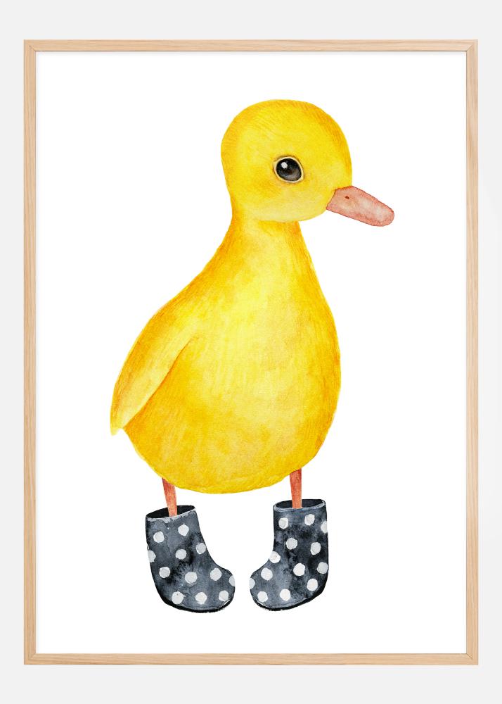 Открийте очарованието на нашия слънчев плакат с патица, който разпространява радост и свири на струните на закачливото. Тази прелестна илюстрация показва сладко, жълто окриляно патенце, облечено в чифт на точки гумени ботуши - изображение, което гарантирано ще предизвика усмивки. Това е закачлив принт, който е идеален за детска стая или като светъл и радостен детайл във всеки дом, добавяйки усещане за удоволствие и невинно желание за приключения.