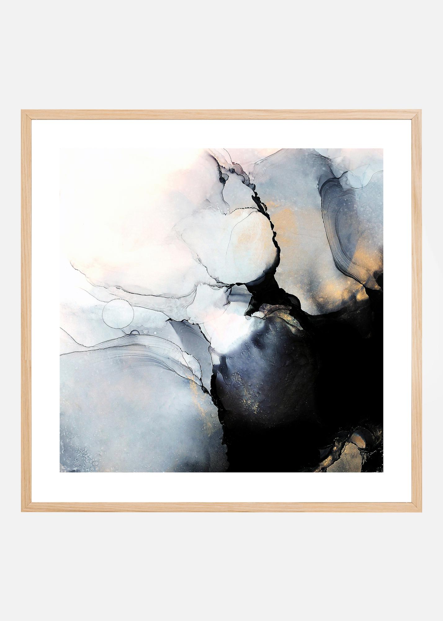 Един чудесно абстрактен художествен постер в акварел, в нюанси на черно, синьо и златно с размиващи елементи от розово, създаден от художничката Габриела Роберг. Постерът, наред с това, стои отлично заедно с художественото произведение DAWN на Габриела.