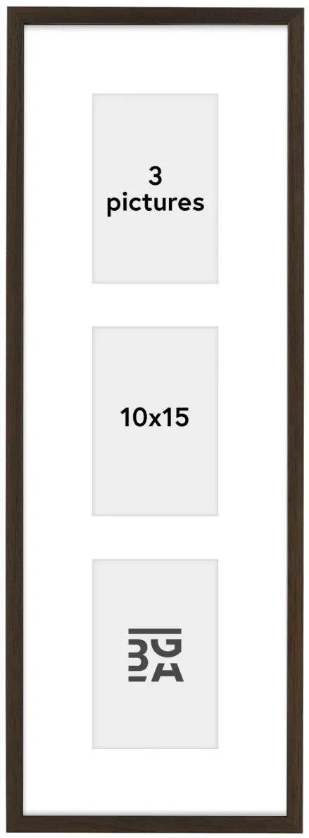Минималистичният дизайн поставя акцента върху мотива, за да могат любимите ви снимки да бъдат в центъра на вниманието. Рамката се предлага в няколко варианта, като тази е версия от орехово дърво с място за 3 снимки с размер 10x15 см.