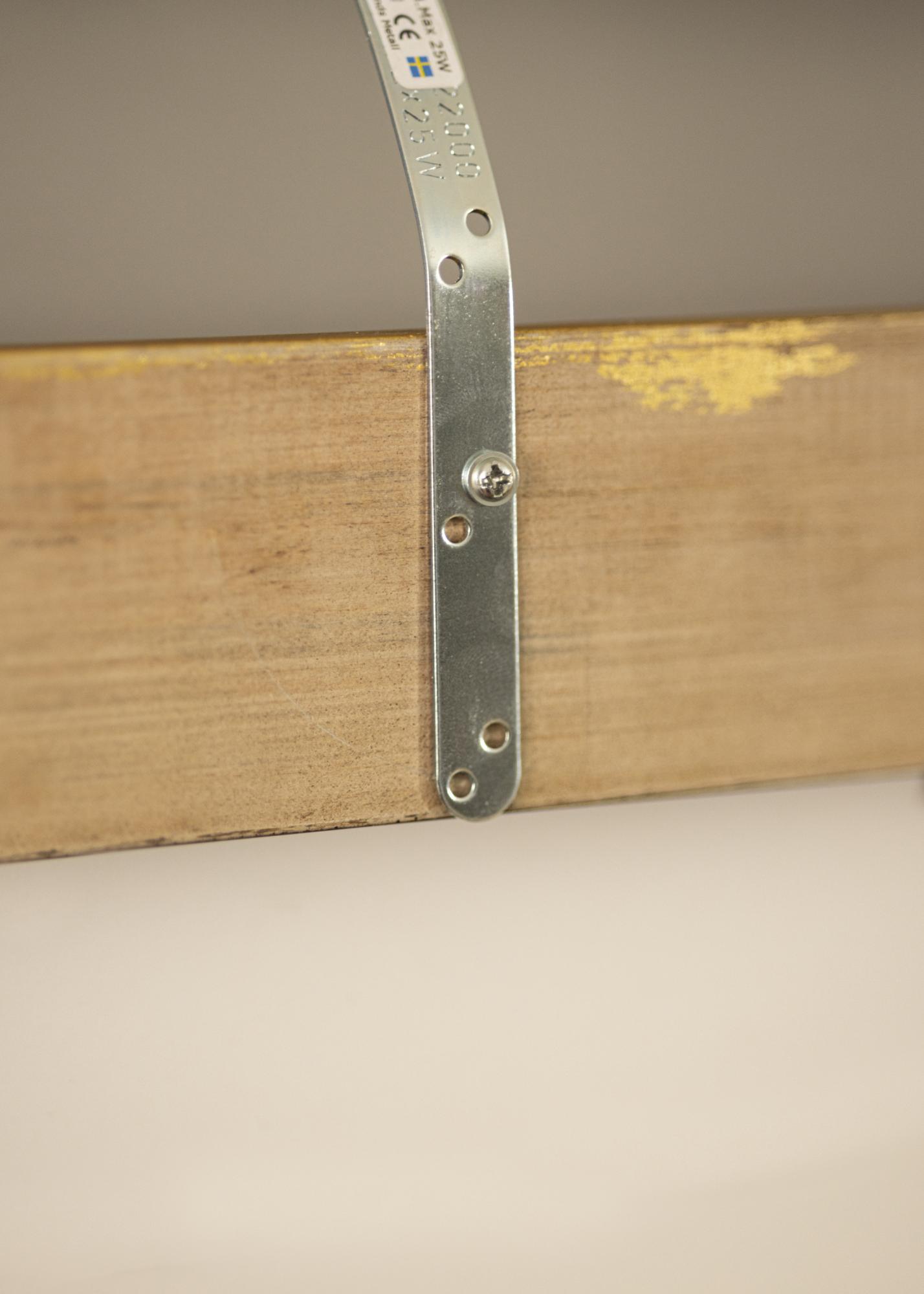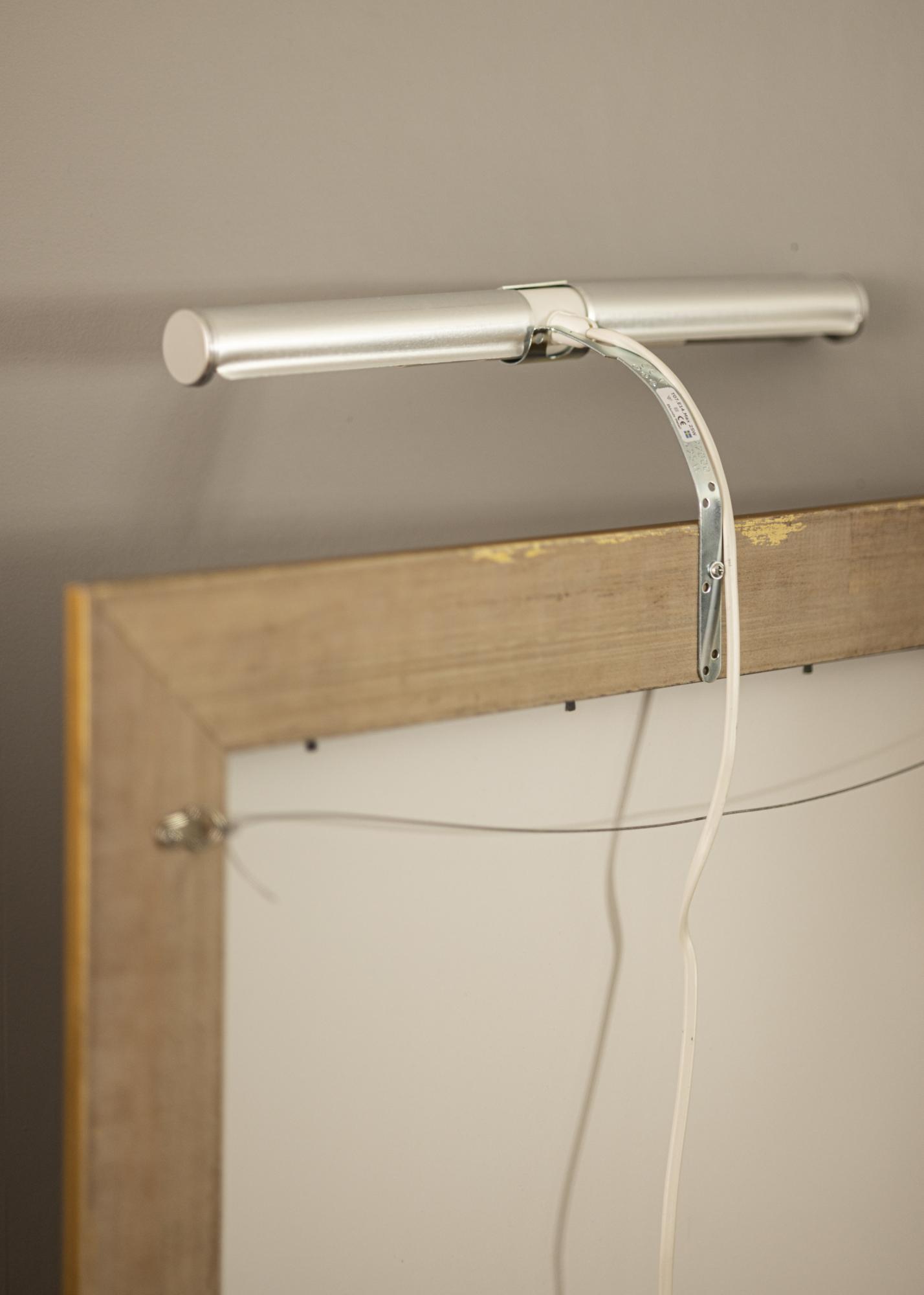 Обикновено закрепвате осветлението за картини на задната страна на рамката, недостатъкът на това е, че се изисква дървена рамка (някои композитни рамки също са подходящи), която има широка форма, за да бъде възможно да се завие в рамката. С нашия стенен държач не се налага да мислите за това, а просто монтирате осветлението за картини директно на стената зад картината.