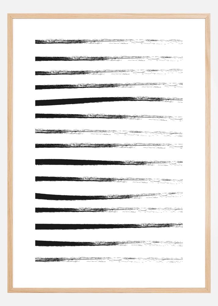 Елегантен постер с черни линии. Линиите започват като силни черни линии отляво и избледняват надясно, когато четката спира. Тази картина би изглеждала фантастично на стена с дръзки цветове, която наистина кара тези линии да изпъкват.