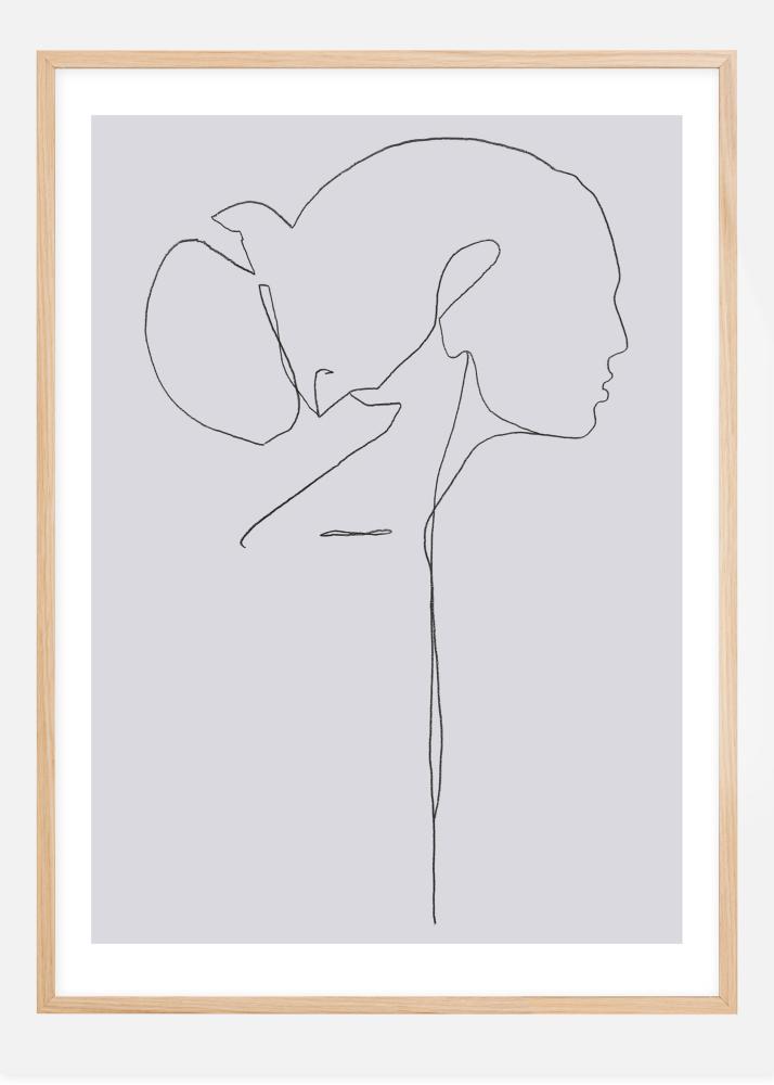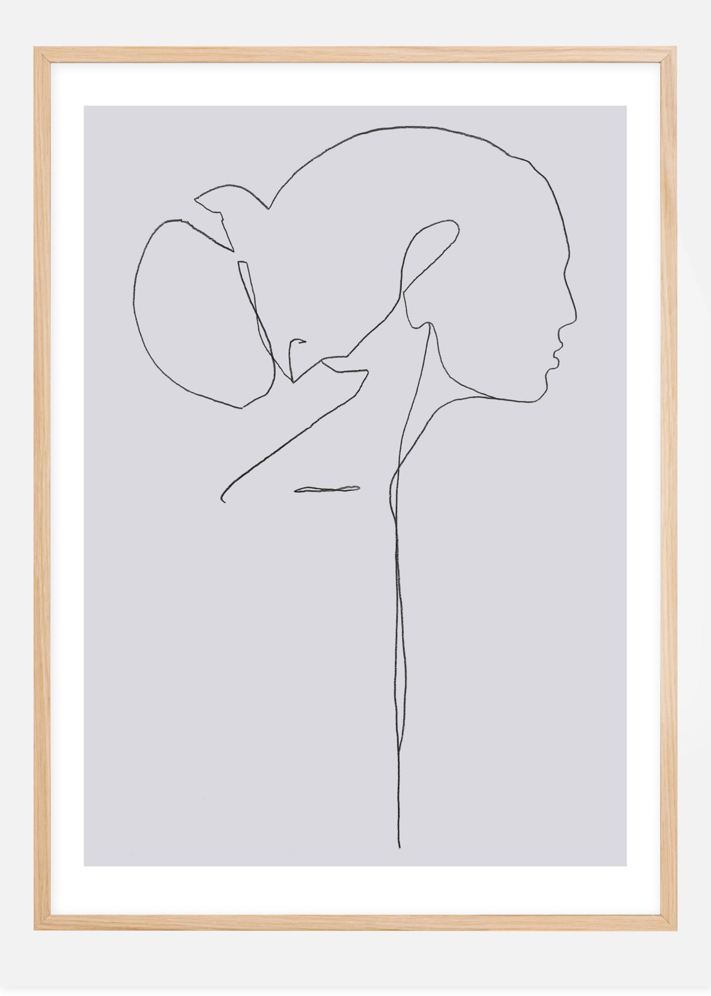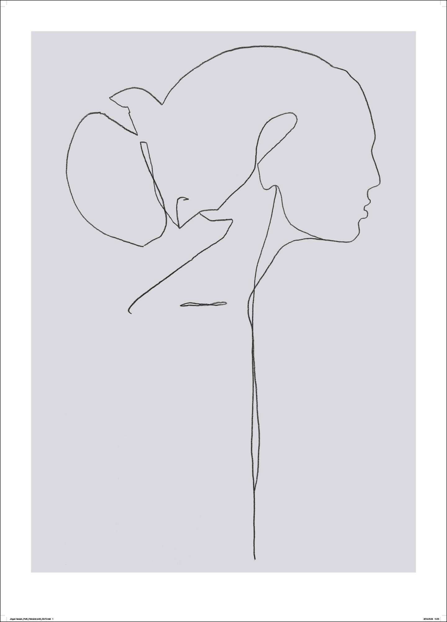 Красива и стилна линейна рисунка във формата на жена с вдигната коса, изобразена в профил, създадена от Jörgen Hansson Art. Плакат, който е хубав за комбиниране с останалите Female Lines на Jörgen Hansson за колаж на същата тема.
