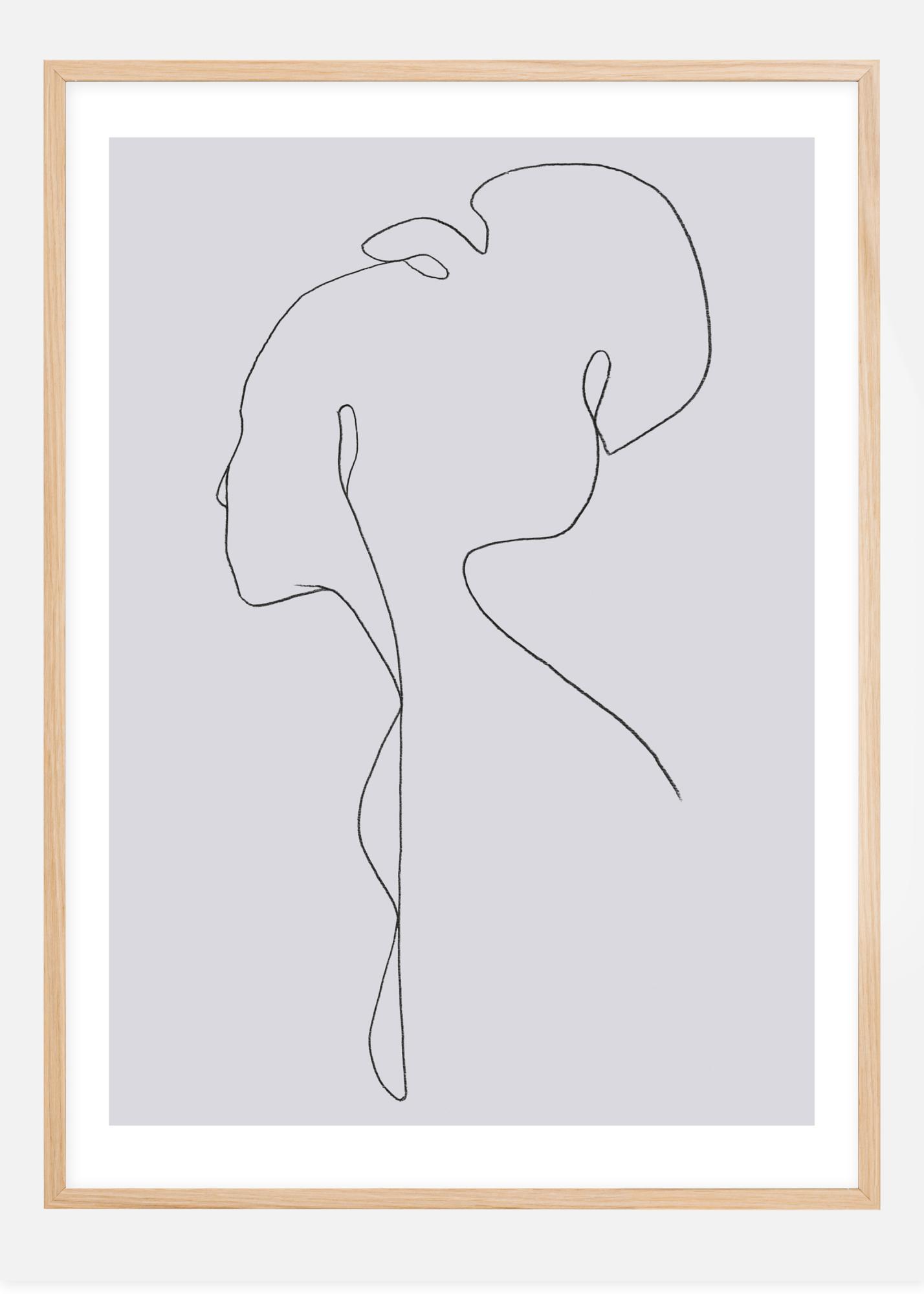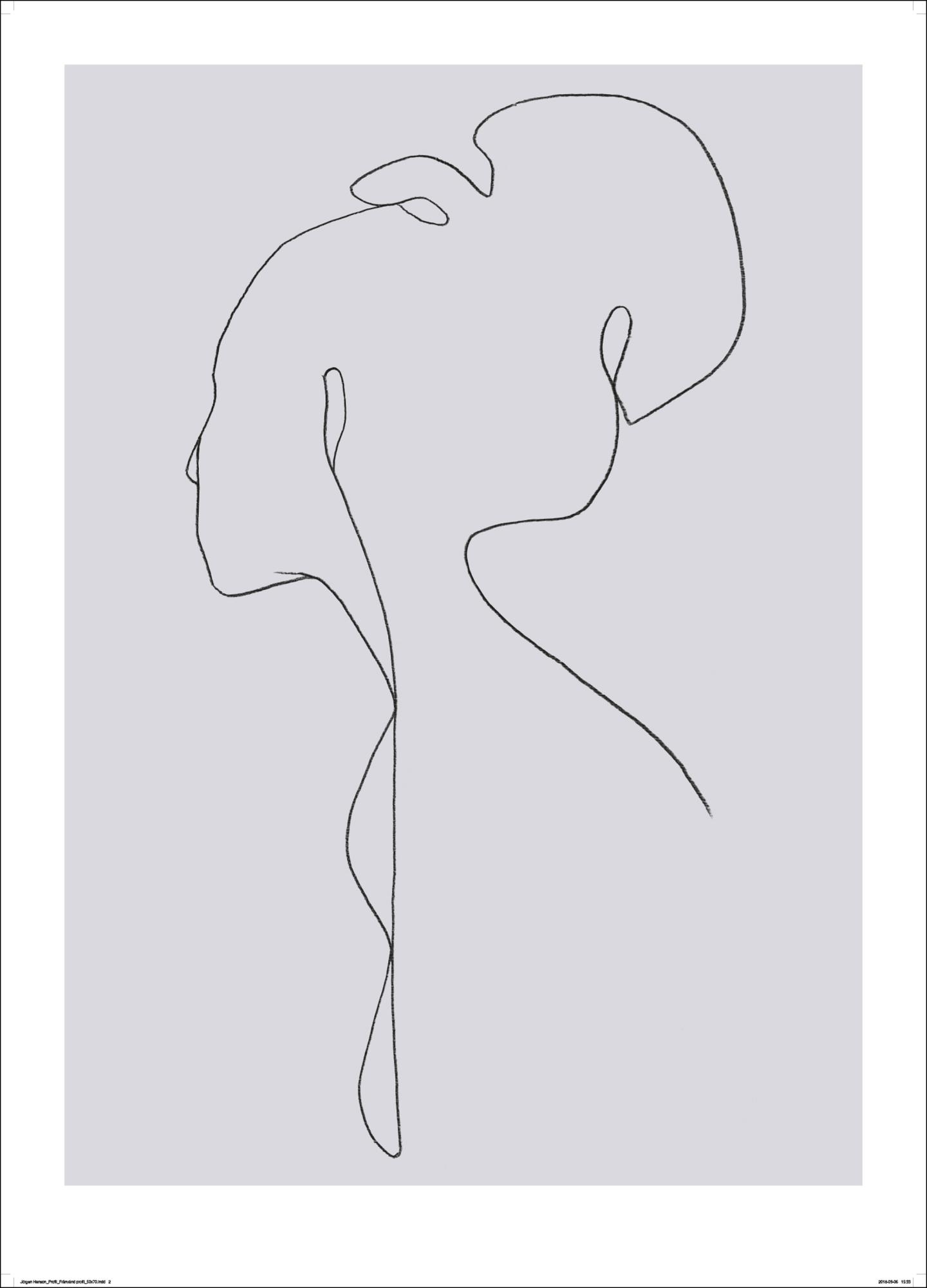 С крехки черни линии на сивкаво-сив фон се оформя профилът на жена. Нейният поглед е насочен далеч от зрителя, а косата ѝ е вдигната на възел на главата. Красив и стилен плакат, създаден от Jörgen Hansson Art.