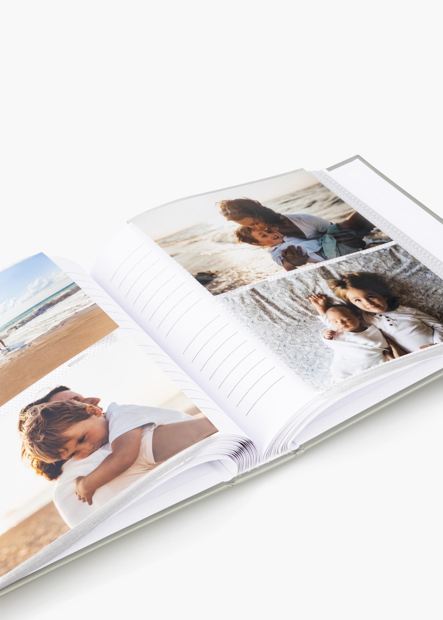 Кориците на албума са обвити в вечен сив цвят, който пасва на всеки дом и стил на обзавеждане. Белите страници предлагат чист и свеж фон за вашите фотографии, докато хоризонталната ориентация на снимките подчертава уникалния чар на всяка снимка. За всяка снимка има също подходящо поле за писане, където можете да отбележите паметни детайли или дати, което прави албума и личен, и информативен.