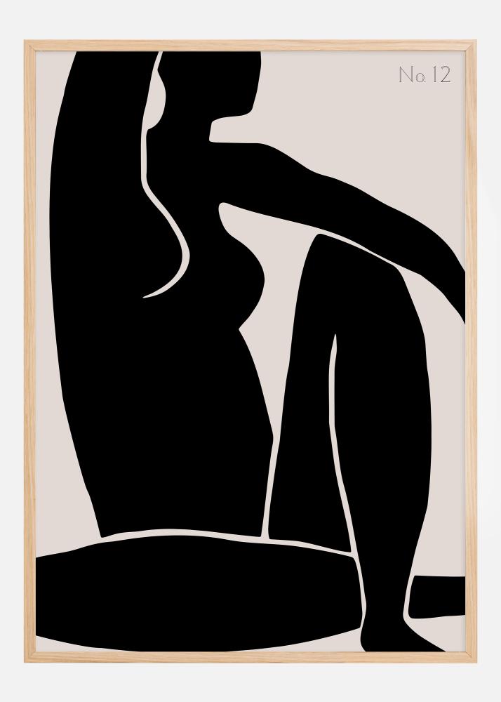 Контрастът между черната фигура и светлия фон не е просто смел, той илюстрира също срещата между светлина и сянка, форма и празнина, предоставяйки силен графичен ефект. 'No. 12' е плакат, който е толкова съвременно художествено изживяване, колкото и интериорен детайл, и е перфектен за тези, които търсят съвременна естетика с нотка на драматичност. Той е идеален за минималистични или монохромни интериорни стилове, където може да стои като силен самостоятелен акцент или да бъде комбиниран с други подобни произведения, за да създаде впечатляваща стена със снимки.