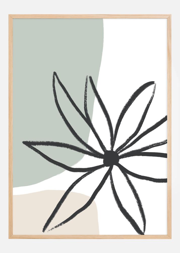 Този постер, "Flower Mint and Cream", излъчва простота, която е едновременно съвременна и изключително елегантна. Неговият мотив представя стилизирано цвете с мощни черни щрихи върху успокояващ фон от ментово зелено, създавайки контраст, който е както дръзък, така и балансиран. Кремавият, неутрален тон, който запълва долната половина на изображението, осигурява мек контраст, който допълва минималистичния дизайн.