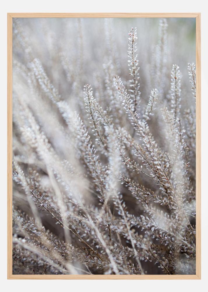 Зимен плакат с измръзнали треви. Всяка тревица от крехката трева е уловена в тази невероятна и доста магическа картина. Тревиците стоят изправени, но се сливат с фона, където цялото поле от трева нежно се люлее. Закачете го на топла стена, за да му придадете малко цвят.