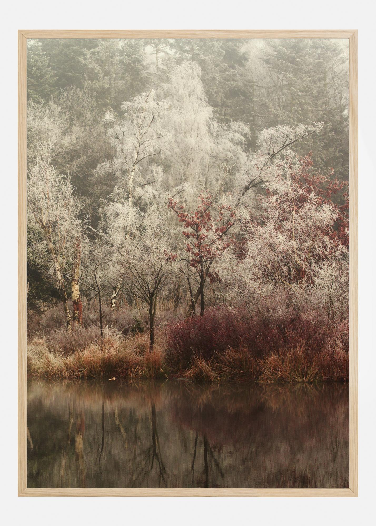 Тих и спокоен постер със замръзнал горски пейзаж. Ясно и спокойно езеро се намира на преден план с тъмно червена трева и покрити с измръзване дървета на заден план. Почти можеш да усетиш тишината и спокойствието, които излъчва тази красива, магическа картина.