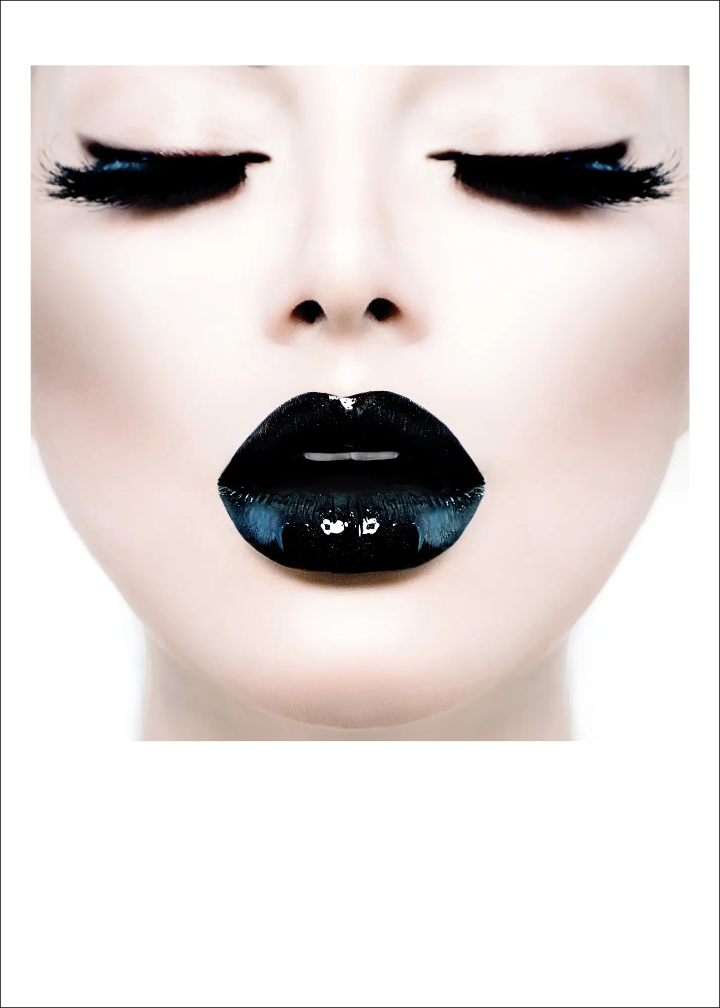 Един чудесно изпъкващ постер за фотоизкуство под темата мода! Тук черни плътни устни и дебели черни мигли срещат порцеланово бяла кожа и бял фон. Стилен и контрастен постер, лесен за комбиниране с други любими произведения на по-голяма стенна галерия.