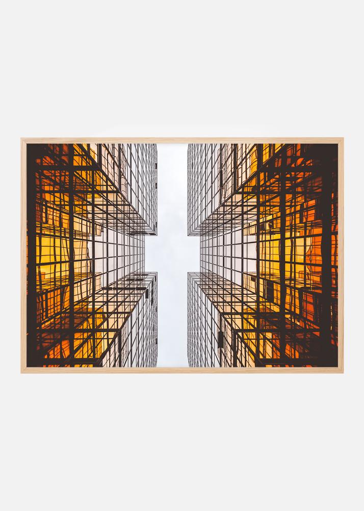 Плакат с футуристична архитектура, която със своите графични линии създава вълнуващ модел. Цветовете преливат от дълбоко оранжево в основата на сградата към бялото небе. Плакатът подхожда добре с по-тънка рамка както за минималистичен интериор, така и за други стилове с графични елементи. Комбинирайте с други картини на вълнуваща архитектура или градски среди.