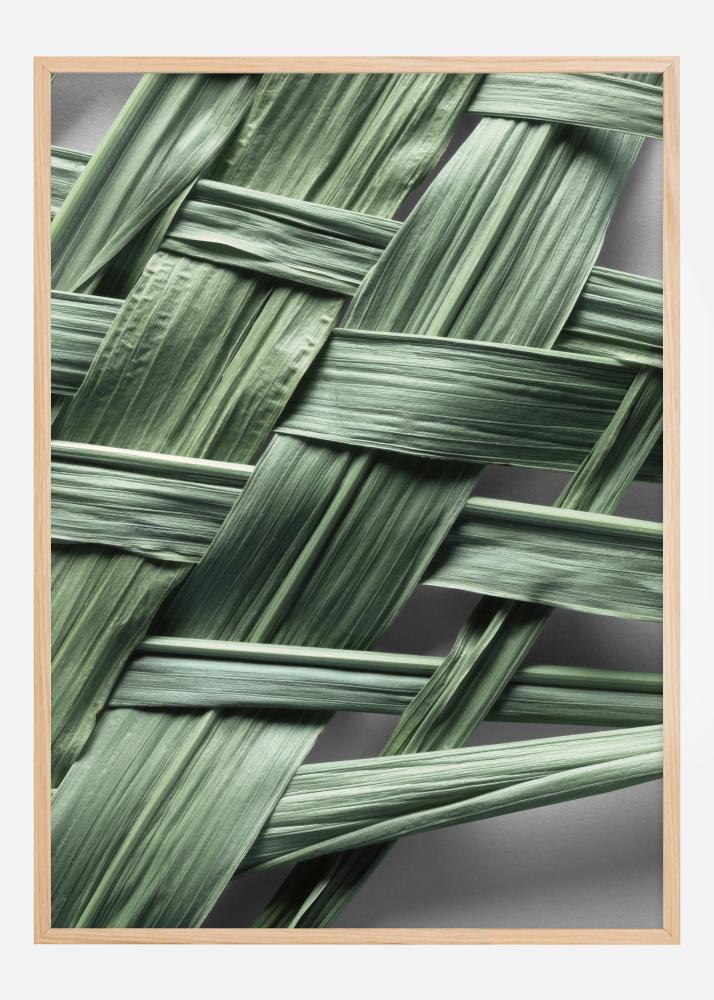Този стилен и вдъхновен от природата постер показва детайлна тъкан от зелени листа, чиито линии се пресичат в организиран безпорядък. Живият зелен цвят и различните текстури, видими в листата, създават успокояващо и свежо впечатление, като допринасят за усещането за присъствие на природата на закрито.