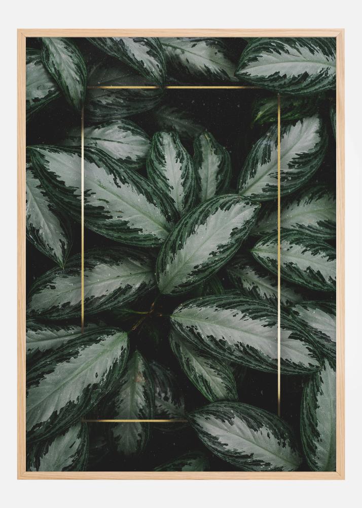 Със своите смели и живи зелени нюанси, този постер предлага освежаващ елемент от природата във вашия дом или офис. Мотивът изобразява плътна композиция от листа, чиито детайлни шарки в различни нюанси на зелено на тъмен фон подчертават тяхната естествена красота. Живата текстура на всяко листо и контрастиращите тъмни линии създават визуална динамика, която е едновременно успокояваща и енергизираща. Този принт е възхвала на простия, но сложен дизайн на природата, идеален за тези, които искат да внесат елементи на естественото и органичното в своя интериор.