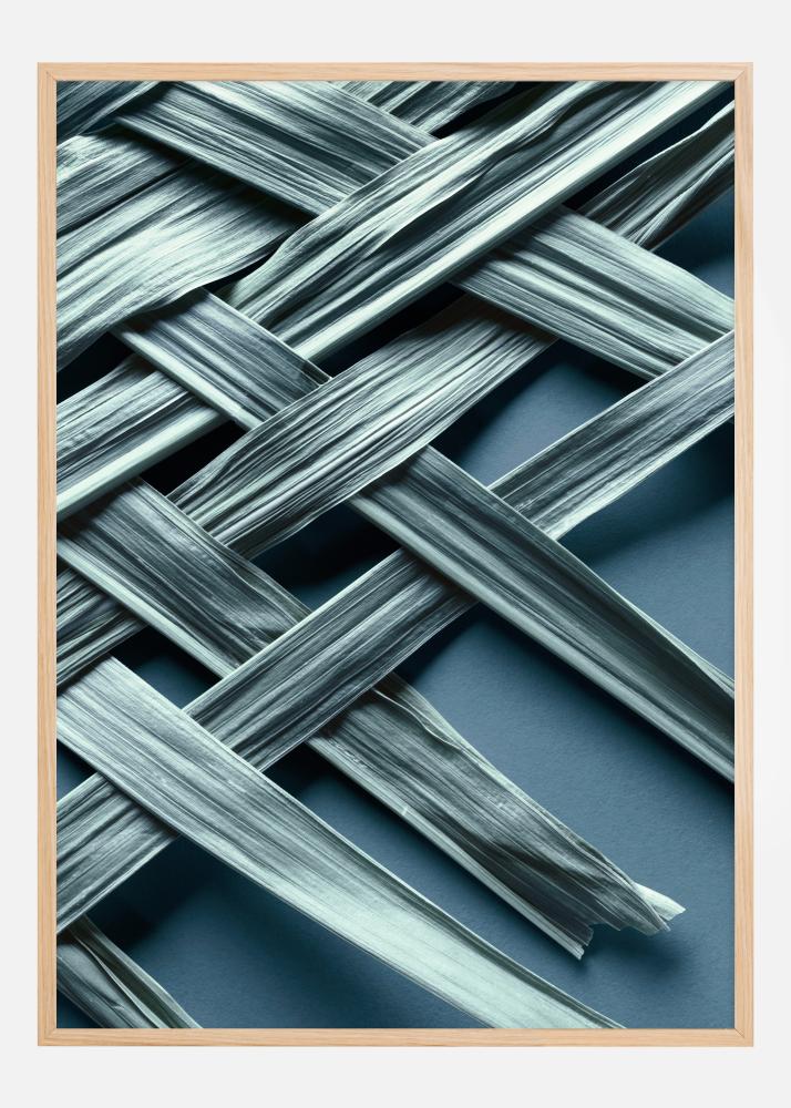 Този съвременен постер представя завладяващ и абстрактен мотив от пресичащи се линии с мек в синьо-зелен тон. Внимателно подредената композиция от линии създава динамичен модел, който придава усещане за движение и текстура, правейки изображението както визуално интересно, така и замислящо.