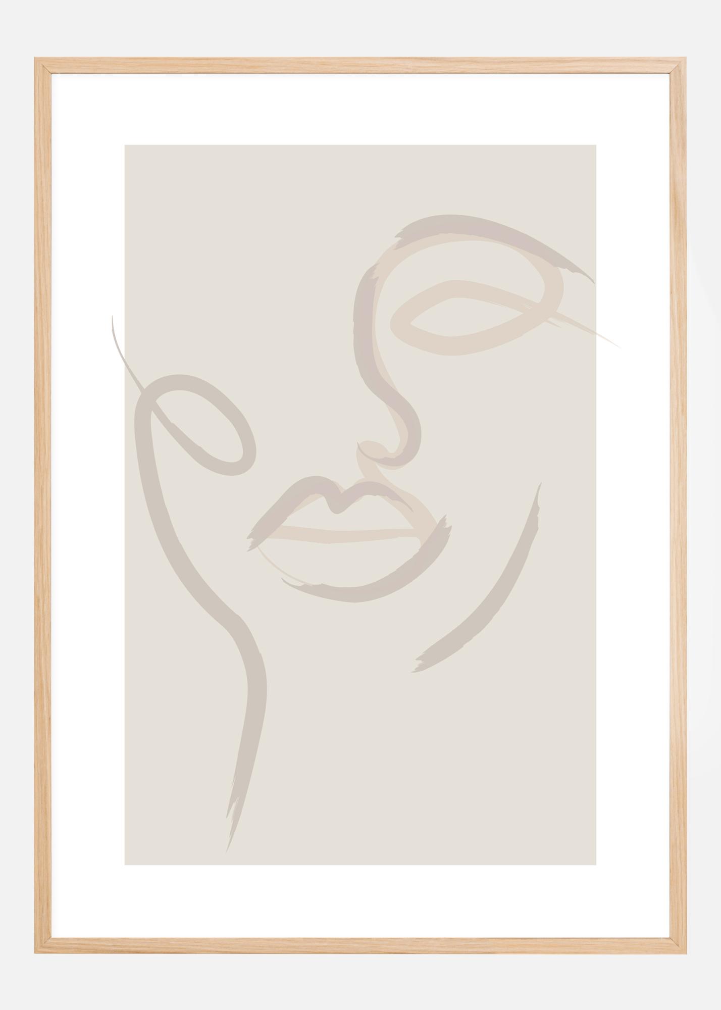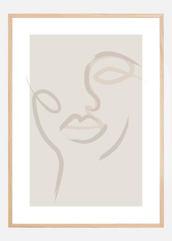 Един красив портретен постер, направен с прости движения на четката. Простите линии оформят женско лице на бежов фон. Това е простота в най-добрия си вид. С помощта на тези три прости движения на четката може да се запитате кой е този красив дамски образ?