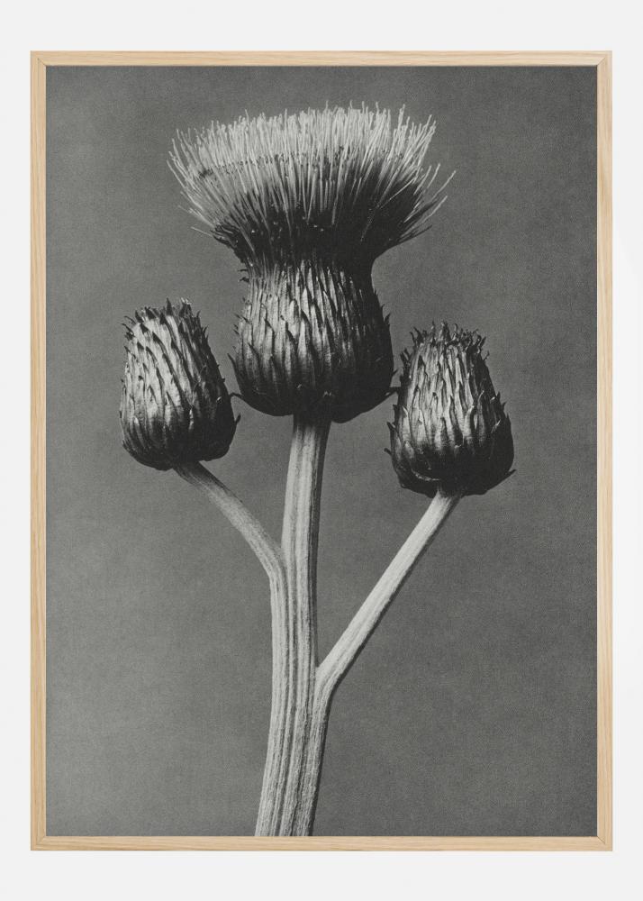 Ефектен печат сиво цвете, наречено кардоон. Този прост, но зашеметяващ печат, изобразен на сив фон, създава усещане за самота. С естествената светлина, която нежно осветява цветето, това е перфектен постер за всички, които обичат цветя.