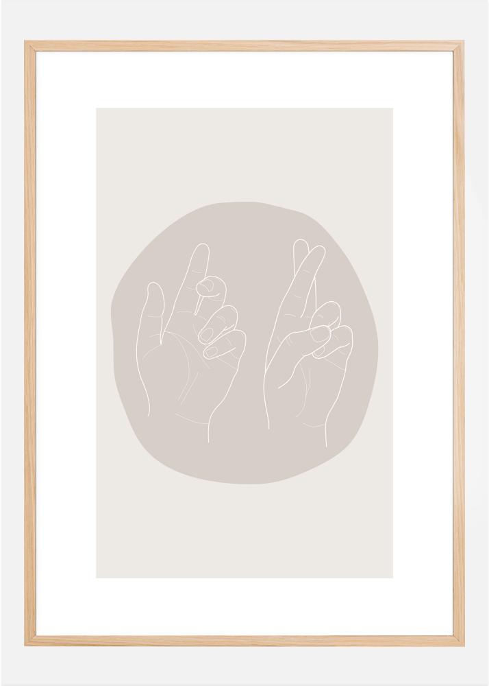 Един опростен постер с две леви ръце срещу кръгла бежова форма. Кръгът е поставен на фон в телесен цвят, с двете ръце, насочени към горния край на постера. Ръцете са отпуснати и създават спокойна атмосфера в дома ви. Перфектното изображение за вашия кабинет.