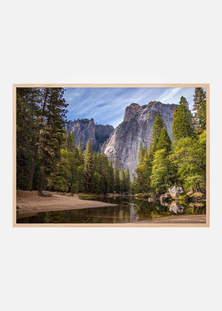 Принт с високи скали и тиха гора, които се отразяват в спокойна водна повърхност. Говорящо мълчание, което създава мирен пейзаж. Заедно с рамка от естествени материали, картината пасва на всякакви типове декорации и цветови схеми. Окачете фотографията заедно с други природни изображения или изберете по-голям размер, за да постигнете ефект като самостоятелна картина.