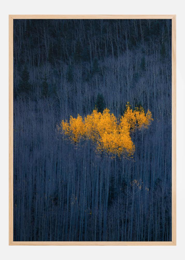 Страхотен постер, който изобразява тъмнозелено и полунощно синьо дърво. В средата на отпечатъка върховете на дърветата са подчертани в жълто, което придава малко цвят на отпечатъка. Красив отпечатък, който да закачите в хола, за да създадете релаксираща атмосфера.