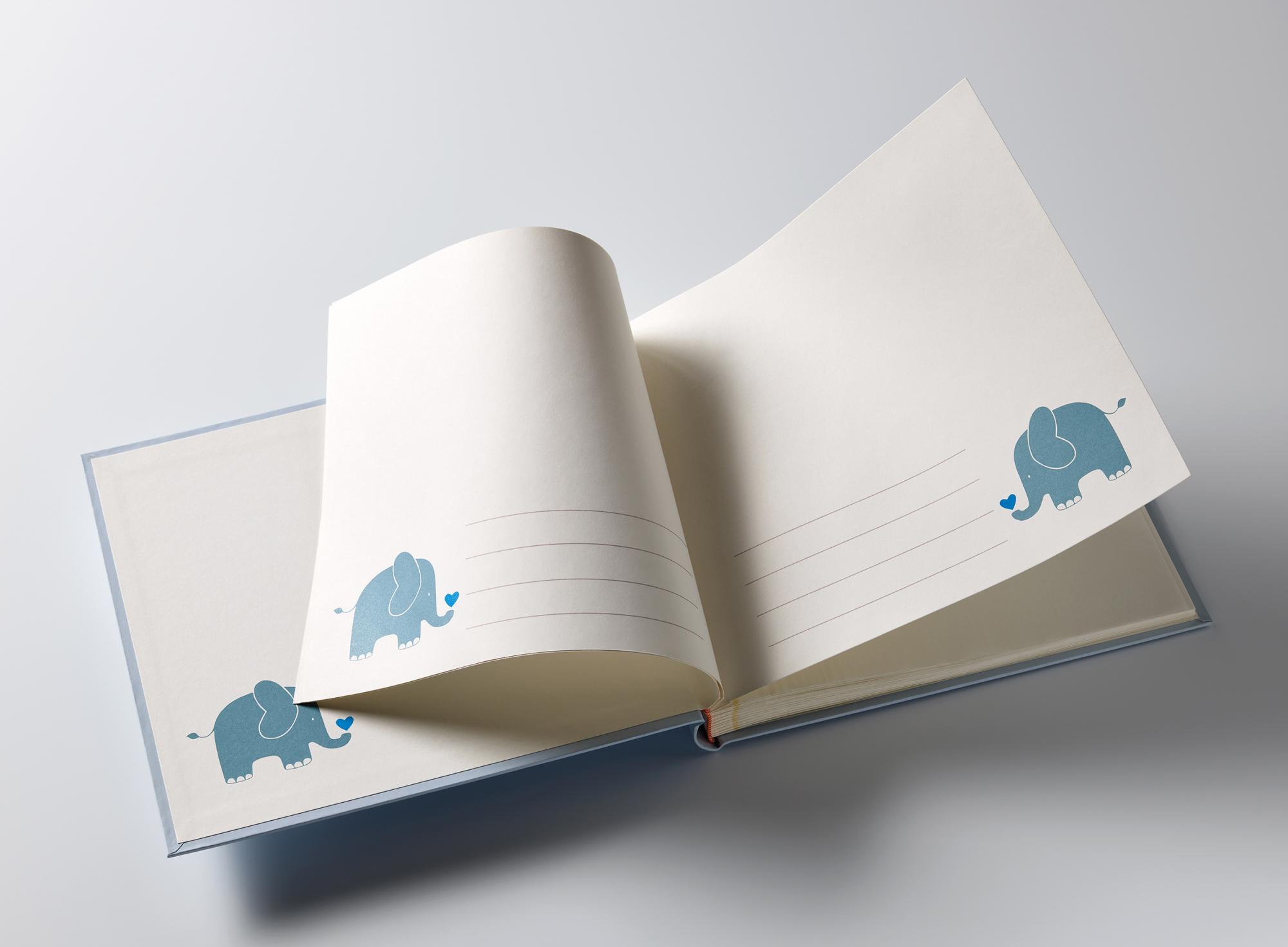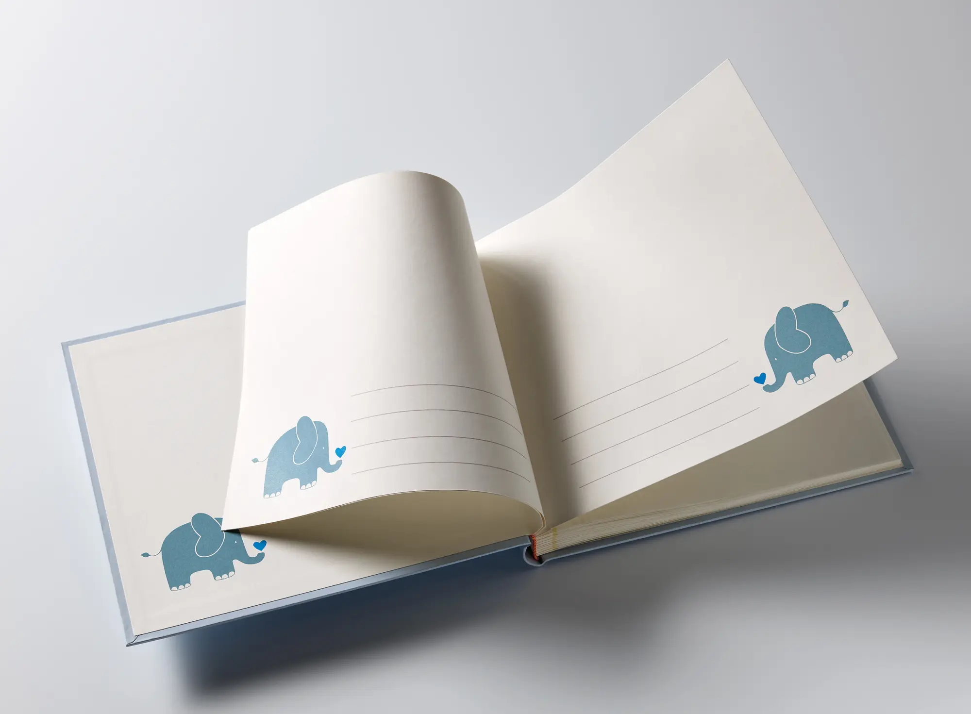 Стилен и сладък са две ключови думи, които се харесват на повечето нови родители. Тук имаме един красив бебешки албум, който може да бъде описан точно така! На лицевата страна има текста "Hello baby" заедно с графично изображение, представящо малко слонче, което държи сърце. Вътре ще намерите 50 броя бели страници, на които можете да създадете красиви колажи.