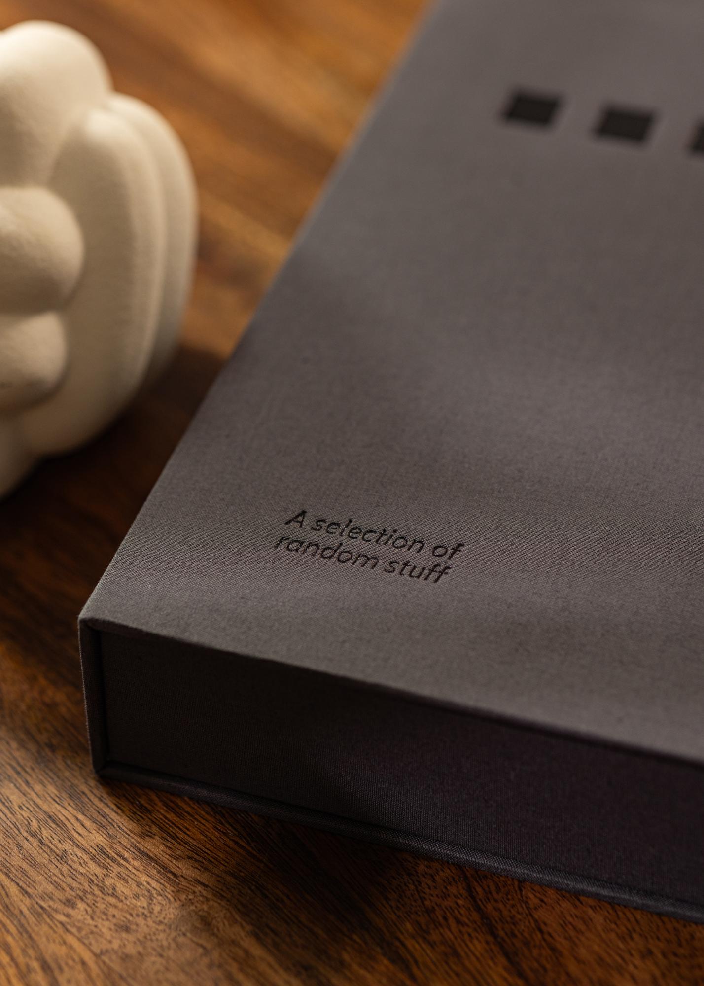 Когато думите са излишни и изображенията и спомените могат да говорят сами за себе си, тогава можете да си набавите снимков албум със заглавие: ... Този Coffee Table Photo Album има различен и игрив – но в същото време много стилен – дизайн, който го прави увеличавляко както на елегантна и модерна интериорна детайлност, така и на практичен снимков албум. Снимковият албум е елегантно облечен в черен текстил и безсловесното заглавие е бляскаво отпечатано на предната страна на албума. В долния ляв ъгъл на албума ще намерите и печат с подзаглавието А селекция от случайни неща.
